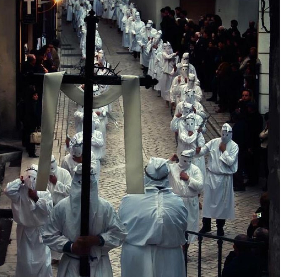 Ogni Venerdì Santo per il paese sfilano i battenti: uomini, donne e bambini senza volto e senza voce, coperti da un cappuccio e una tunica bianca che li rende irriconoscibili. I penitenti partono dalla chiesa per proseguire in una processione in cui camminano scalzi flagellandosi con la disciplina, una catena formata da piastre di ferro legate tra loro, camminano per i vicoli del paese per poi tornare al punto di partenza dove continuavo a colpirsi ancora più intensamente. Il motivo del percuotersi è quello di avvicinarsi a Cristo e al dolore che ha provato, in epoca medievale era invece un gesto principalmente indicato ad espiare i propri peccati.